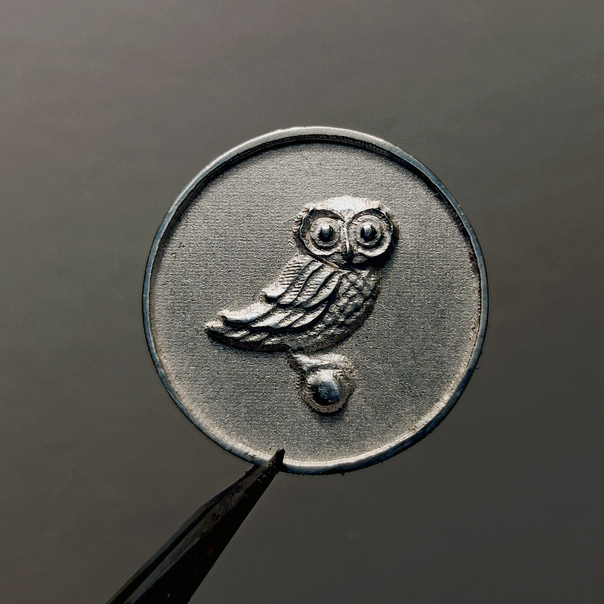 Hormiga tallada en cera y fundida en bronce / Vidrio soplado